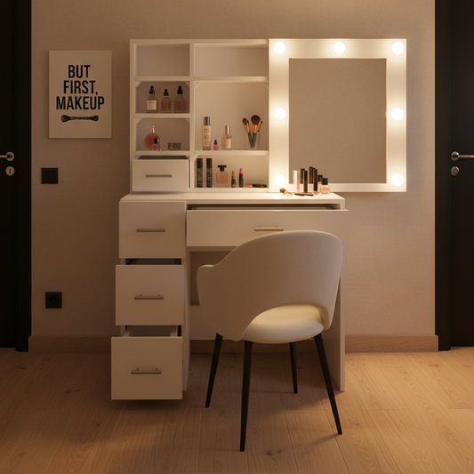 Le miroir coiffeuse 2-en-1 – Gagnez de l’espace, gagnez du style.